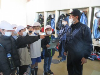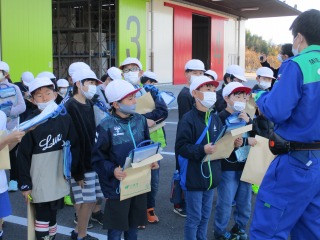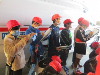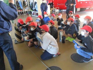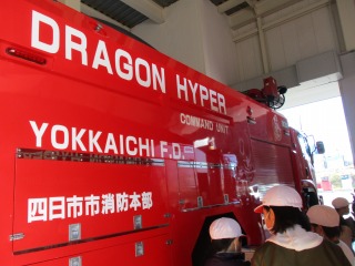 消防自動車や市の防災の備蓄倉庫、消防署の屋上にあるドクターヘリ用のヘリポートも見せてもらいました。中には、全国に12台しかない消防車も見せてもらいました。四日市市と三重県のそれぞれの倉庫には、食糧や簡易トイレ、バッテリー…などが入っていました。子どもたちは、たくさんメモを取っていました。みたいものがたくさんあって時間が足りないくらいでした。