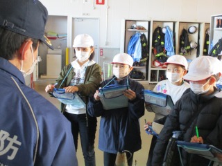 行先は「四日市北消防署北部分署」と「三重県広域防災拠点(北勢拠点)」の2か所でした。消防署の方々や三重県の方に丁寧に話や案内をしていただきました。