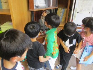 ★校長室にも「たんけん」に来ました。歴代の校長の写真や「賢くなる像」にびっくりしてました。子どもたちのお気に入りは、ふわふわのソファーでした。