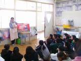 大型絵本でした。絵の隅々まで見ることができました。お話の中味がおもしろいので、読んでくださる方とのやりとりもあり、みんなで本の世界を楽しみました。高学年になって誰かに読んでもらう機会は少なくなりますが、いくつになっても楽しいです。とてもいい一日の始まりになりました。(学校づくりビジョン・アクション⑩)