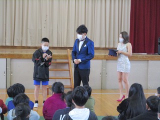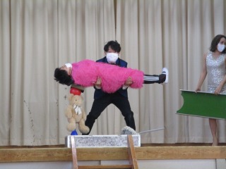 今年度も平津新町の大島さんのご厚意により、世界でも有名なマジシャンであるDAIKIさんのマジックショーをひまわりと6年生の子どもたちが見せてもらいました。