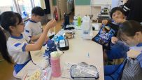 6年生は、9月から家庭科でナップザック製作を行ってきました。