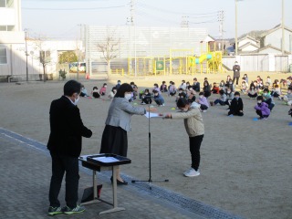 ★表彰式です。一部の子だけですが、様子をお伝えします。