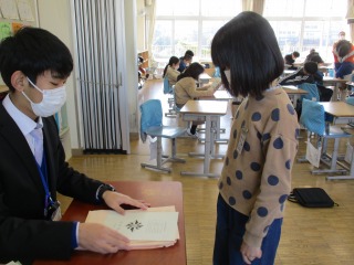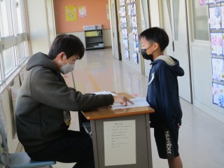 教室に戻った後、各学級の担任から、「あゆみ」をもらいました。「がんばったこと」「3学期に頑張ること」を話してもらいました。