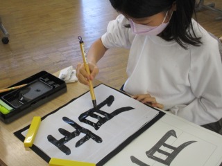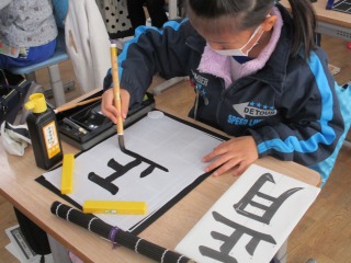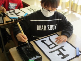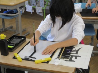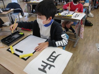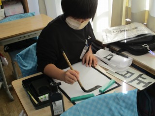 今日、久しぶりに3年生の書写を見に行きました。とても上手になっていたので、びっくりしました。きちんと練習してきた様子がうかがえます。真剣な顔つきも格好良かったです。