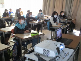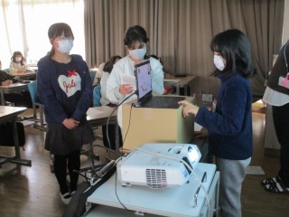 先日、地域の方や保護者の皆さんの前で発表した「防災たんけん隊」で調べたことや学んだことを今日はZoomを使って、八郷西小学校の4年生と交流しました。