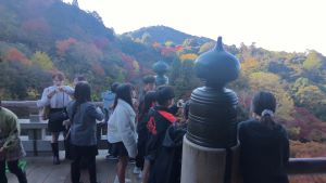 朝から清水寺を訪れました。まだお店が開いていない時間帯でしたが、すでに多くの人でにぎわっており、子どもたちも驚いた様子でした。この後は銀閣や二条城を見学し、太秦映画村へ向かいます。