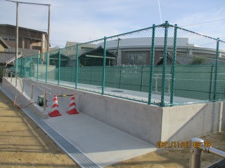 夏休み前から行われていた「災害用便槽」の工事がほぼ完了しました。この「災害用便槽」は、災害時に本校が避難所となる際、仮設のトイレを便槽の上に設置し使用する…というものです。さまざまな方が利用されるのでスロープもつけられました。
