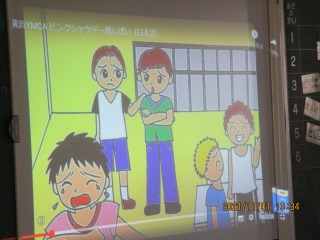 今日から校内で「いじめ防止強化月間」としての取組を行っています。いじめについての授業だけでなく、「ピンクリボン」や「ピンクの服」などを教職員が身に着け、「いじめは絶対にダメ!!」ということをアピールしています。