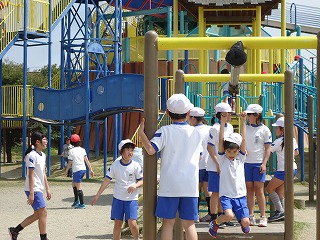 3年生と一緒に遠足に行ってきました。東員町の公園まで行きました。電車に乗ると見慣れた景色も見えてとてもわくわくしていました。3年生の子が上手く歩けるように、「行くよ。」「大丈夫?」「あと少し、頑張ろうね」などと声をかけていました。公園には大きな遊具もあり、みんなとても楽しそうでした。お弁当もにこにこ美味しくいただいていました。とても暑い日でしたが、頑張って歩いてくることができました。