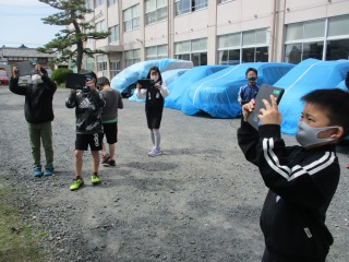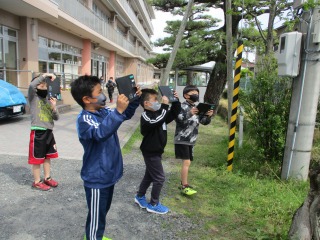 理科の授業で観察に行きました。今までは、ノートにスケッチをしていましたが、一人1台のタブレットがあるので、スケッチせずに見つけたことをタブレットで写真を撮り、保存していました。「こんな葉っぱを見つけたよ。」「大根の花があったよ。」などとうれしそうでした。虫を見つけた子もいました。タブレットを使って、学習を深めていきます。