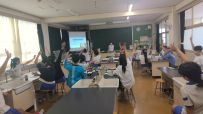 『依存症について学ぼう』というテーマで薬物乱用防止についてお話を聞いたり、薬を正しく使うための実験を行ったりしました。