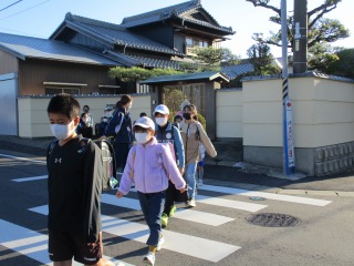 ★今日の登校の様子です。たくさんの班がきまりを守って安全に登校していました。