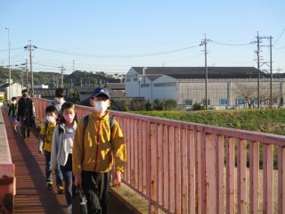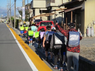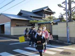・違う班と混じっていて、2列で並んだり、道いっぱいに広がったりしています。
