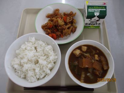 9月の献立テーマは「元気いっぱいメニュー」です。今月の給食には、豚肉、たまねぎ、にんにく、にらなど、夏の暑さで疲れた体を元気にする食べ物がたくさん登場しています。