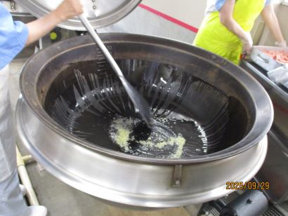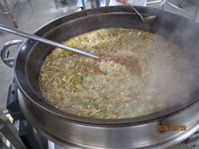 にんにくを炒めて香りを出し、ほかの具材も炒めてからみそ汁をつくります。スタミナたっぷりのみそ汁をおいしくいただきました。