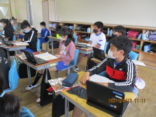 今日は6年A組です。社会科の学習で「市役所はどのようなところなのか」を調べました。子どもたちはどんどん調べていきました。四日市市役所のホームページから「何をしているのか」「どのような役割があるのか」を調べていました。