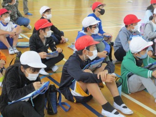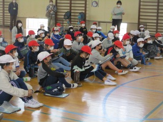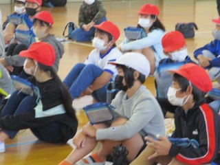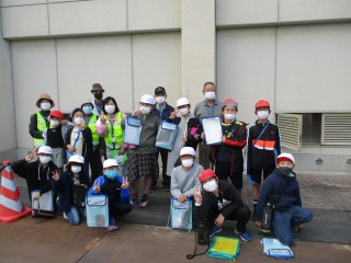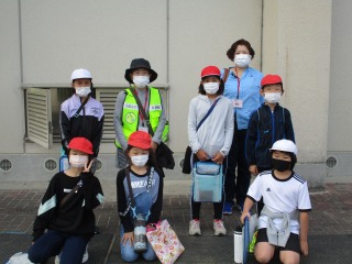 そして、そのあと、各地区に分かれ、たんけんです。今日は地域の方々が30名来ていただきました。それぞれの地区を一緒に回っていただき、防災倉庫や消火栓などを教えてもらいました。大変お世話になりました。ありがとうございました。今日のまなびをまとめて、後日、発表会を行います。