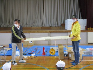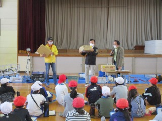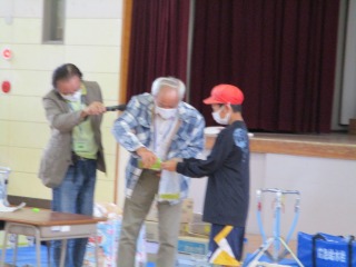 そのあと、簡易トイレの実験で用をたすと尿が砂に変わる…ということを見せてもらいました。災害のときには、こういうことも必要なんだ…ということを教えてもらいました。