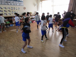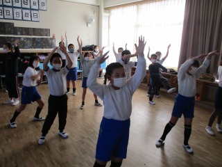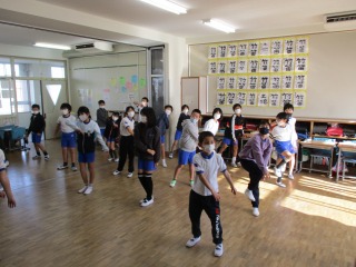 本校では、1年生から5年生までの子どもたちがZOOMにて参加しました。ケント・モリさんからの「もっとジャンプ!!」「好きなように踊っていいよ」の声掛けに最初は戸惑う子もいましたが、時間が経つにつれ、ケント・モリさんのマジックにかかったように自由に楽しんでダンスで表現する子どもたちの様子が見られました。
