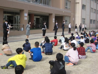最初に着任式を行いました。今年は7人の先生たちを新しく迎えました。着任式では代表して教頭先生から話を聞きました。「一緒にいい八郷小学校を作っていきましょう」と話がありました。