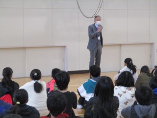 6年生が朝明中学校へ、中学校の授業体験に行きました。一緒に進学する大矢知興譲小学校の6年生と最初は校長先生の話を聞かせてもらいました。「中学校で待っているからね。」と声をかけていただきました。その後、「中学校と小学校のちがいは何だと思いますか?」と担当の先生から質問がありました。授業時間が50分になること、20分休みがなくなること、掃除の時間がかわること、自転車で通学する子もいること、クラブがあること、定期テストがあること…など、ちがいをたくさん教えてもらいました。子どもたちは真剣なまなざしで話を聞いていました。