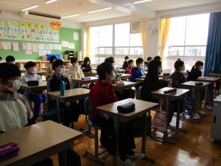 その後、6年A組は社会、6年B組は算数の授業を中学校の担当の先生から受けました。あと2か月半で中学生になります。しっかりと力をつけて送り出したいと思います。
