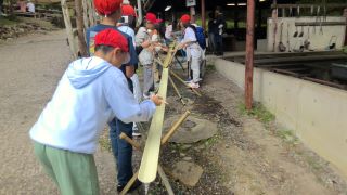 お昼ご飯は流しそうめんでした。取る箸が少し短かったので、みんな必死で、とても楽しそうでした。