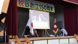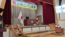 本日、四郷小学校150周年記念式典を行いました。県会議員様をはじめ、連合自治会長様、くろがねもち協議会の皆様、創立150周年記念行事実行委員様、交通ボランティア様、クラブボランティア様に出席していただきました。四郷小学校にとってなくてはならない、伊藤小左衛門さんのご子息様にも出席していただきました。本来であれば、全校でこの式典を行いたかったのですが、学級閉鎖の学年もあり感染症対策を講じて、5.6年生は体育館に入り、1年生から4年生までは各教室をオンラインでつないで行いました。