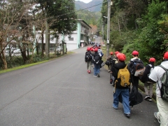 自然教室に着き、入所式を終えると、まずは創作活動(スプーン作り)のための柄探しに里山に入りました。10円玉より太く500円玉より細くて丈夫な枝を求めて、班の仲間で「それは長さは丁度いいけど、細いよ」「一応、予備で持っておこう」などと声を掛け合いながら探しました。