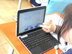 「みえスタディチェック」はCBT(Computer Based Testing)のため、問題はタブレットに表示され、1部の解答もタブレットで行います。