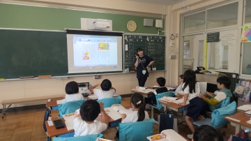 今日は、担任が登場人物になりきって実演し、子どもたちがそれを当てるという学習をしていました。子どもたちは意欲的に手を挙げて「ねこです」と答えたり、「(犬が)とびこんできたからです」ときちんと根拠を言って答えたりすることができていました。