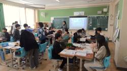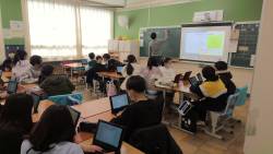 3年生の学級から音読の声が聞こえてきました。①全員で音読する ②4つの作品から自分が読みたい作品を音読する ③4つの作品から一つみんなの前で暗唱する を行っていました。この取り組みは、日本語のリズムを身につけて音読を上手にしていくためです。担任にこの4つの作品を選んだ理由を聞いてみました。これから先、高学年、中学校、高校と進んでいく中で出会うであろう作品をあえて選んで取り組んでいるのだそうです。学級がとてもあたたかい雰囲気で、暗唱もみんなで受け止めて聞いている姿がとても素敵でした。