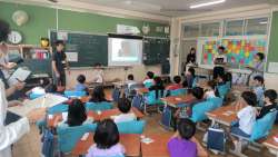 2時間目『じぶんでチャレンジ大さくせん』1年生の人権学習の授業を、教職員の授業研究として、参観しました。各家庭で取り組んだ家でのお仕事のチャレンジを友達に紹介し交流する授業でした。家での役割の大切さに気づくこと、自分と友だちの生活の共通する部分や違う部分に気づくことを目標としています。友だちの仕事に「すごいな」「その道具ってどんなところで使うの」などの意見が出ていました。まだまだ交流で発表する時間は続くきます。