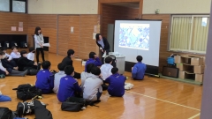 養護教諭の先生から※エピペンやAEDの使用方法について職員が研修をおこないました。初めにエピペンの使い方や使う際の注意点を研修していただき、実際に練習用のエピペンやAEDを使用する取り組みがありました。