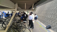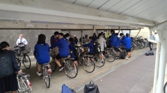 地区別集会の後、2,3年生の自転車通学の生徒は自転車点検を受けました。登下校の安全にはまず、自転車の整備です。きちんとブレーキが利くのか、ライトはつくのか、正しいサドルの位置か等の点検を行いました。