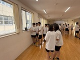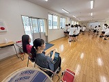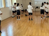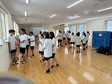 生徒会本部の生徒が中心となり各クラスの代義員さんへアドバイスしていました。タブレットでダンスを確認してみんなで取り組んでいました。全校ダンスが楽しみです。
