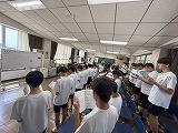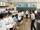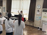 羽津中学校に県内から音楽の先生が集まり、3年生の音楽の授業を通して公開授業研修が行われました。