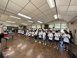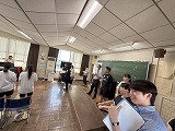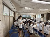 校長先生や県の教育委員会の先生からお話が合った後、2限目の3年生の音楽の授業を見てもらいました。伸びのある歌声が聞こえてきて、すごく上手でした。楽譜を見て確認しながら自分たちの歌声を調整していく姿はとても素晴らしかったです。
