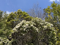 歩いていると木に小さな白い花がたくさん咲いているのを見つけました