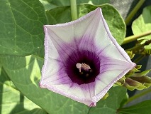 畑の蔓の中にピンク色の花を見つけました。