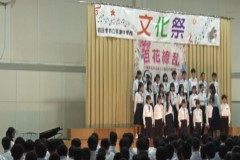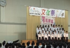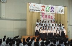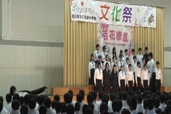 生徒会長より一人一人が輝く合唱をしていきましょうと挨拶がありました。1年生のみなさん元気な合唱を披露できました。
