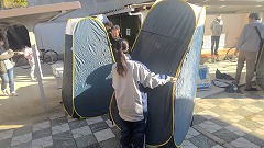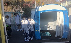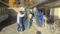 中学生も地域の方や関連機関の方と一緒になって訓練に参加しました。避難所の設営をするために簡易トイレ等の設営をしました。また発電機は気温10℃以下では作動しないこともわかりました。たくさんの方が参加され、中学生にとって防災の備えや避難所運営についてたくさん学ぶことができました。地域の皆さま・関連機関の方々ありがとうございました。