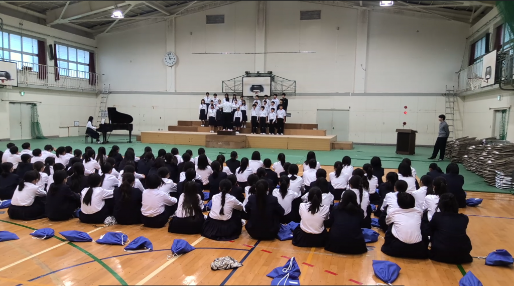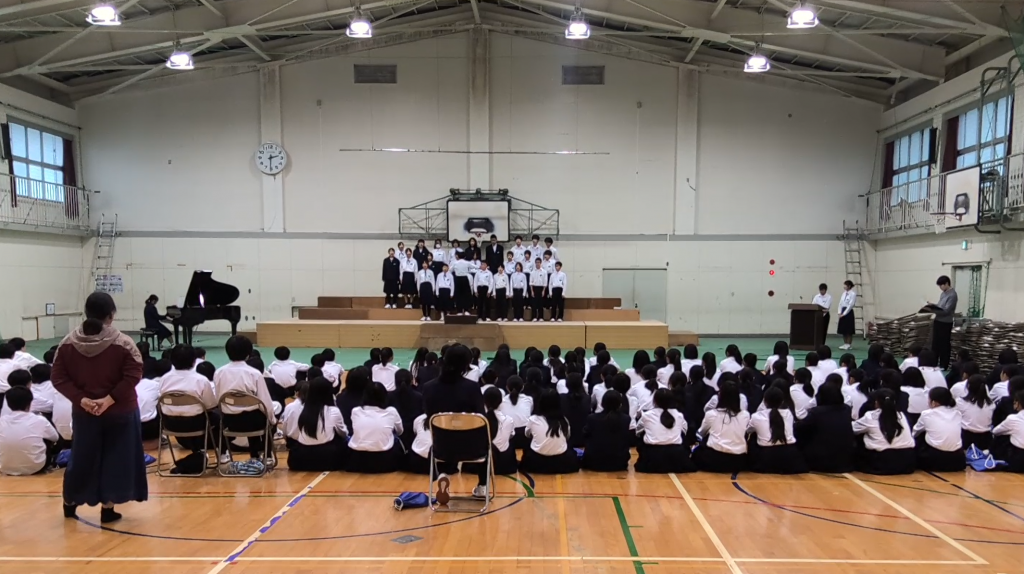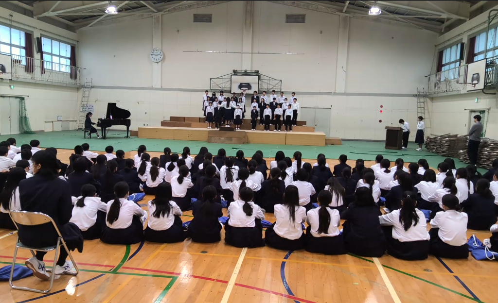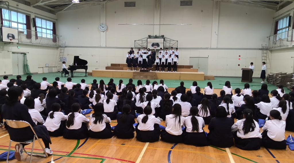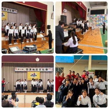 羽津地区文化祭のステージの部では、音楽部の皆さんが、NHK音楽コンクール発表曲やジブリの曲を披露しました。堂々とした合唱で素晴らしかったです。