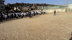 授業中に震度6の地震があり火災が発生したという想定で避難訓練を行いました。普段と違う場所からの避難訓練となりました。どのように避難するのが安全であるかを考えて避難しました。みんなで安全に避難していくために考える大切な時間となりました。
