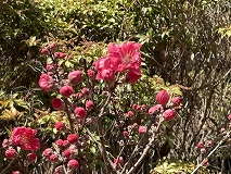 学校近くの公園で赤や桃色の花に出会いました。