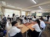 羽津中学校では「羽津みタイム」という時間を設けています。相手の気持ちを理解したり、自分の感情を適切に伝えたり、協力して行動したりといった、日常生活で必要となる行動や考え方を身につけることを目的としています。本日は班の中であるひとつのお題について一人ひとり話をした後、最後のフリートークのときに相手の話をさらに深めていくことを行いました。みなさんリラックスしてお話をしていました。