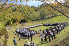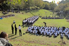 垂坂山公園で全校合唱や学年合唱を披露しました。山に響く歌声は本当に奇麗で垂坂山の自然の美しさと相まって素晴らしいものになりました。