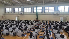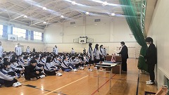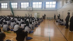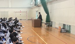 校長先生より、「みなさん大変頑張った2学期だった思います。体育祭、文化祭、山コン、人権学習など人のつながりやみんなが幸せな社会について考えてくれました。また学習面や生活面では自己目標を大切にして取り組むことができました。」と2学期を振り返ってのお話しがありました。