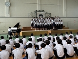 体育館で3年生・2年生の学年合唱練習が行われました。